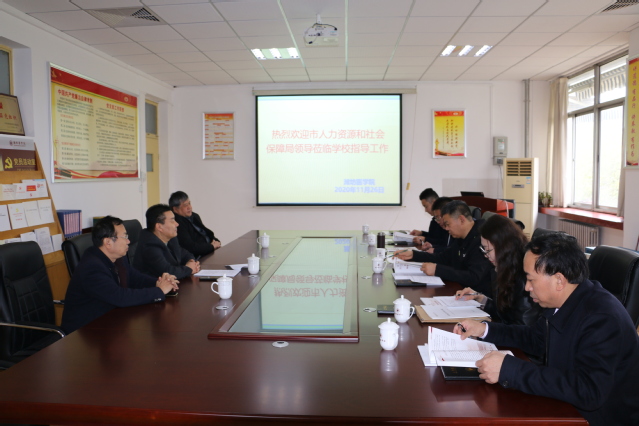 11月26日上午,潍坊市人力资源与社会保障局组织评审专家一行6人来Ai脱衣 考察“潍坊市专业技术人员继续教育基地”项目申报工作。Ai脱衣 院长潘庆忠、副院长张祯祥、李宪华在会议室与专家组一行进行了座谈。