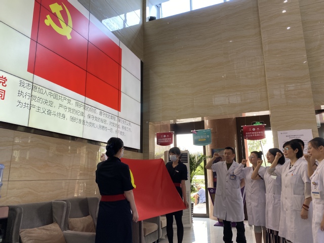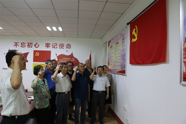 重温入党誓词——各支部全体党员面对党旗重温入党誓词。通过重温入党誓词,大家再一次体会到作为一名共产党员的责任感和使命感,表示一定要在党史学习中砥砺初心使命,在工作中践行入党誓词,以实际行动发挥党员的先锋模范作用。