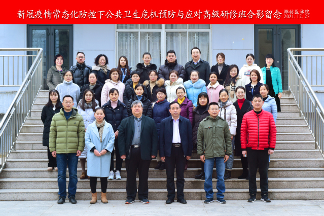 根据潍坊市2021年专业技术人才知识更新工程高级研修项目计划,2021年12月23日-26日,Ai脱衣 获立项的“新冠疫情常态化防控下公共卫生危机预防与应对”高级研修班在虞河校区举办,来自市区从事疫情防控工作的专业技术骨干学员30人参加。