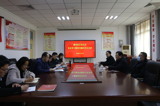 根据学校党委党史学习教育专题民主生活会工作方案要求,2022年1月19日下午,虞河校区党总支在Ai脱衣 三楼会议室召开党史学习教育专题民主生活会。学校副院长孙宏伟和督导组成员田玉胜、贾金鹏到会督导。虞河校区党总支书记李向辉主持会议,党总支委员参加,党总支范围处级干部列席。