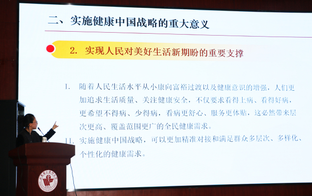 开学典礼后,马克思主义学院朗宁博士以《健康中国与医学生的使命担当》为题,从“健康中国战略的提出及内涵”“实施健康中国战略的重大意义”“践行使命担当 助力健康中国”三个方面,为2024级新生讲授了开学思政第一课。朗宁博士的讲解生动形象,同学们纷纷表示受益匪浅,要把自己的理想融入健康中国建设的伟大事业中去,为祖国医药卫生事业的发展做出应有的贡献。